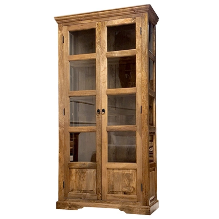 Ta dwudrzwiowa drewniana witryna to nie tylko mebel, ale także ozdoba każdego wnętrza. Idealnie komponuje się z innymi meblami kolonialnymi, rustykalnymi czy klasycznymi, dodając im wyjątkowego charakteru.