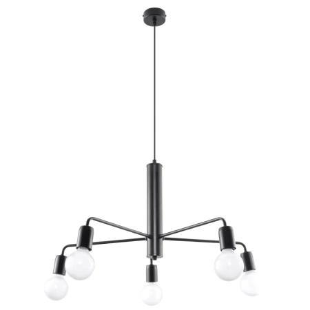 - Źródło światła: E27, 5x60W, 5x15W LED, 50-60Hz, ~220-230V, IP20, klasa ochronności IŹródło światła nie jest w komplecie.Wymiary: 60/60/85 cmMateriał: stal Kolor: czarny