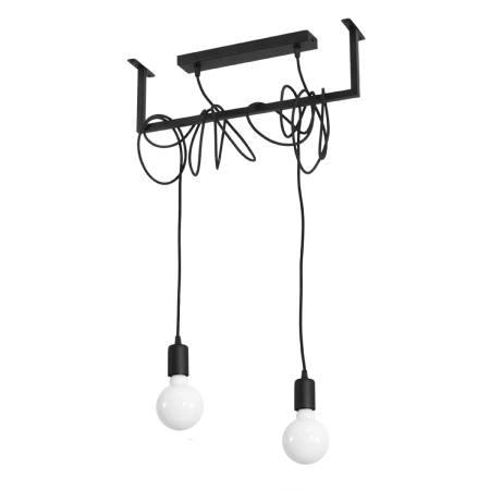 - Źródło światła: E27, 2x60W, 2x15W LED, 50-60Hz, ~220-230V, IP20, klasa ochronności I Źródło światła nie jest w komplecie. Wymiary: 50/10/150 cm [max. długość zawiesia 3 m]Materiał: tkanina, stal Kolor: czarny