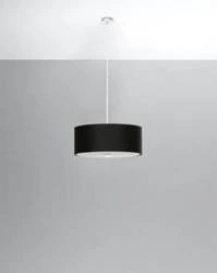 Źródło światła: E27, 6x60W, 6x15W LED, 50-60Hz, ~220-230V, IP20, klasa ochronności IŹródło światła nie jest w komplecie.Wymiary: 70/70/105 cmWymiary klosza: 70/15 cmMateriał: tkanina, szkło, stalKolor: czarny