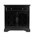 Czarna komoda prowansalska drewniana o szerokości 82 cm z szufladą i szafką.