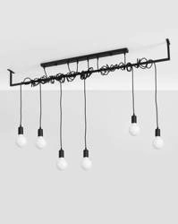 Źródło światła: E27, 6x60W, 6x15W LED, 50-60Hz, ~220-230V, IP20, klasa ochronności I Źródło światła nie jest w komplecie. Wymiary: 150/10/150 cm [max. długość zawiesia 3 m]Materiał: tkanina, stal Kolor: czarny