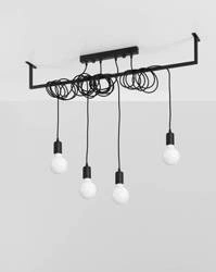 Źródło światła: E27, 4x60W, 4x15W LED, 50-60Hz, ~220-230V, IP20, klasa ochronności I Źródło światła nie jest w komplecie. Wymiary: 100/10/150 cm [max. długość zawiesia 3 m]Materiał: tkanina, stal Kolor: czarny