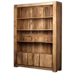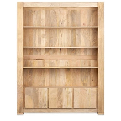 Drewniany regał 150 cm z litego mango. Naturalne wykończenie, 4 półki i zamykane szafki. Idealny do salonu, gabinetu i biblioteki. Styl kolonialny i skandynawski. Trwała konstrukcja z drewna egzotycznego.