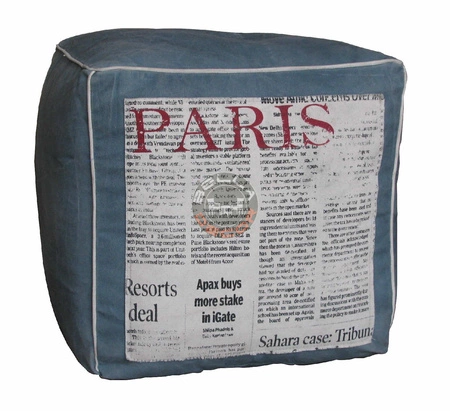 Puf lub jak kto woli pufa Paris , to meblowy dodatek wykonany z grubego płótna z charakterystycznym dla stylu, nadrukiem. Styl LOFT -owy Puf PARIS Kwadratowy puf z nadrukiem. Styl Industrialny, oraz kolorystyka wnoszą powiew Paryża - puf młodzieżowy.