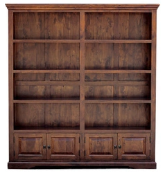 Regał meble kolonialne z litej akacji. Pojemne półki, zamykane szafki, eleganckie rzeźbienia. Idealny do salonu, gabinetu i biblioteki. Styl klasyczny i kolonialny.