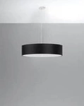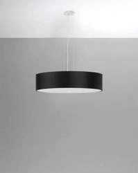 Źródło światła: E27, 6x60W, 6x15W LED, 50-60Hz, ~220-230V, IP20, klasa ochronności IŹródło światła nie jest w komplecie.Wymiary: 70/70/105 cmWymiary klosza: 70/15 cmMateriał: tkanina, szkło, stalKolor: czarny