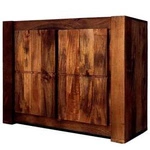 Ręcznie wykonana komoda indyjska z litego drewna mango w ciepłym brązie. Prosty, elegancki design i pojemna szafka z półką czynią ją idealną do salonu lub sypialni.