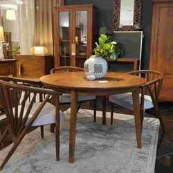 Elegancki okrągły stół drewniany 120 cm z litej akacji w kolorze ciemny orzech WALNUT. Idealny do jadalni i salonu. Klasyka, trwałość i naturalne piękno.