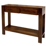 Elegancka konsola z ciepłego brązowego drewna mango o szerokości 110 cm. Doskonała do przedpokoju i salonu, by pomieścić klucze, drobiazgi oraz dekoracje. Sprawdzi się w nowoczesnych wnętrzach.