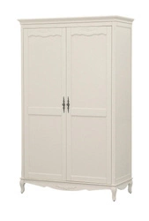 Dodaj prowansalski urok do swojego domu. Szafa dwudrzwiowa w kolorze antycznej bieli, wykonana z drewna jesionu i brzozy, łączy styl z praktycznym układem wnętrza.