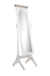 Stojące lustro prowansalskie, białeStojące lustro w stylu postarzanym Shebby chic w sam raz do sypialni. Biała przecierana rama stanowi delikatną ozdobę a całości dopełnia górna cześć ramy lekko przetarta odróżniająca się od białej drewnianej postarzanej