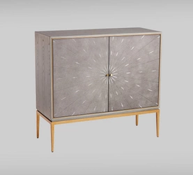 Odkryj naszą stylową małą komodę do salonu w eleganckim szaro-złotym stylu! Dzięki ekoskórze rekina, nowoczesnemu designowi i solidnym materiałom, stanie się wyjątkowym elementem każdego wnętrza. Dodaj szyku swojemu mieszkaniu!