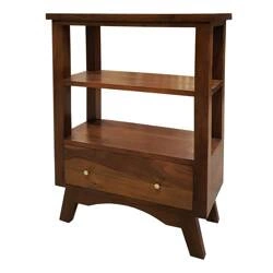 Drewniana konsola z szufladą i półkami z drewna akacji 70 cm – Walnut