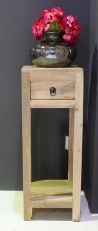 - Indyjska szafka, kwietnik, pomocnik z mango 85 cmPraktyczny indyjski pomocnik - kwietnik, który został wykonany z litego drewna mango, jasny naturalny kolor oraz prosta forma uwieńczona metalowym stylowym uchwytem. Szafka posiada szufladkę oraz półkę a je