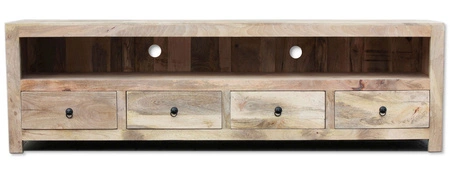 - Drewniana szafka RTV 200 cm z litego mango. Przestronna półka, 4 szuflady i otwory na kable. Minimalistyczny design, naturalny kolor i matowe wykończenie. Idealna do wnętrz w stylu skandynawskim, loftowym i nowoczesnym!