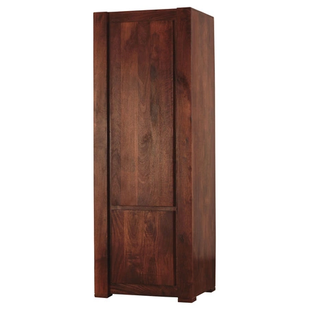 - Szafa z kolekcji VERA DARK, wykonana w całości z drewna mango. Wąska forma, piękny brązowy kolor, drążek na wieszaki, półka i dolna szafka. Doskonała do sypialni, garderoby i holu – naturalna elegancja i rzemieślnicza precyzja.